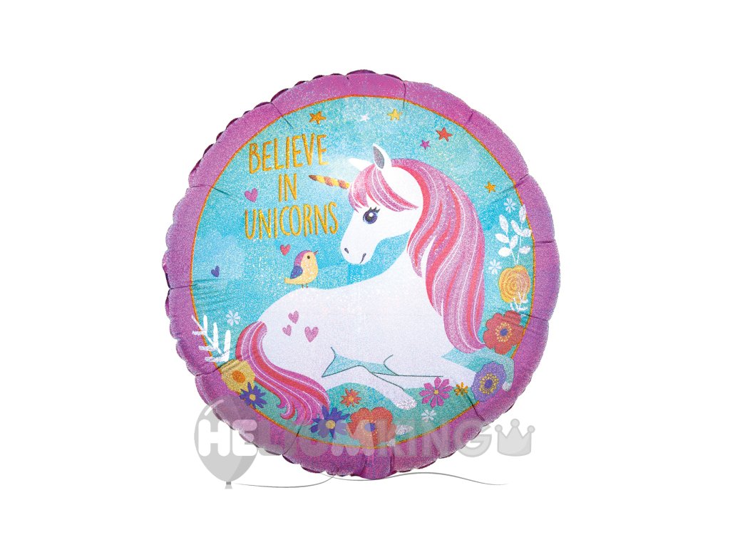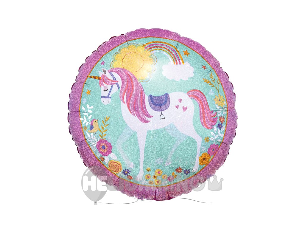 Balon iz folije - Holografski samorog, krog 43 cm