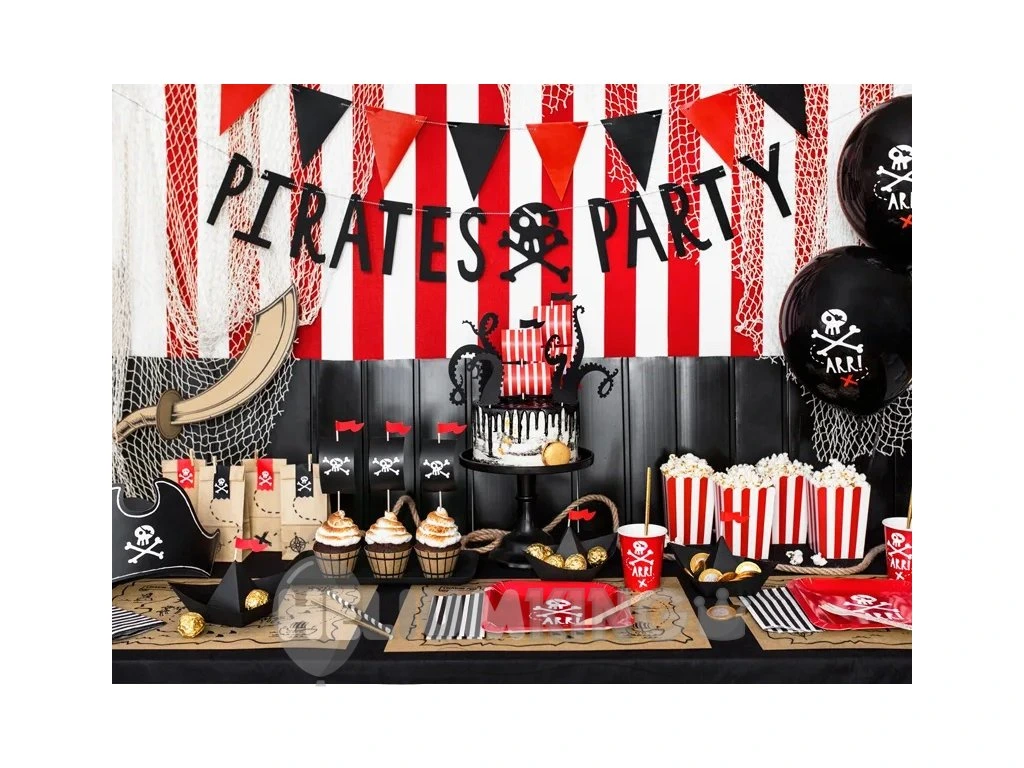 Lateks baloni s piratskim motivom so primerni za dekoracijo tematske otroške zabave ali rojstnodnevne zabave. Baloni so visokokakovostni in se lahko napihnejo z zrakom ali s helijem.