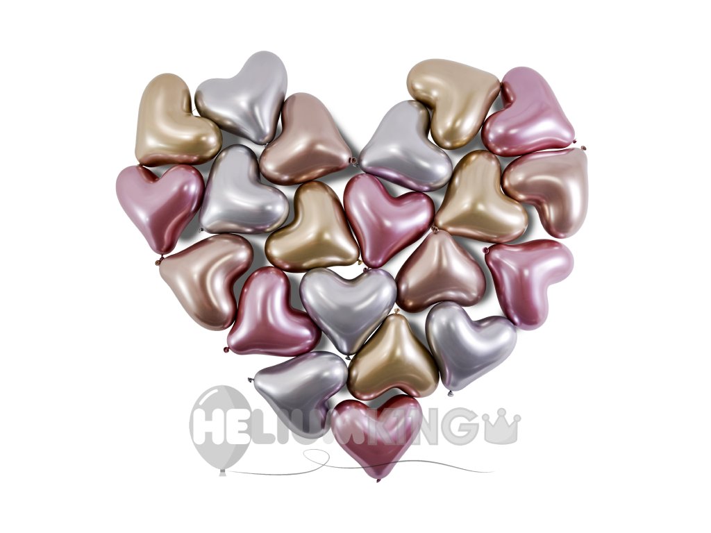 Balončki kromirani srčki 25 cm svetleča mešanica 25 kosov