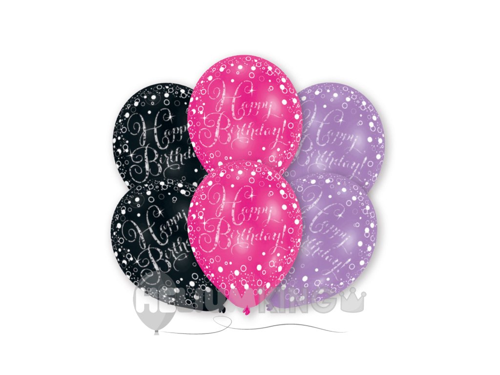 Baloni iz lateksa Vse najboljše roza/črna/vijolična 6 kosov