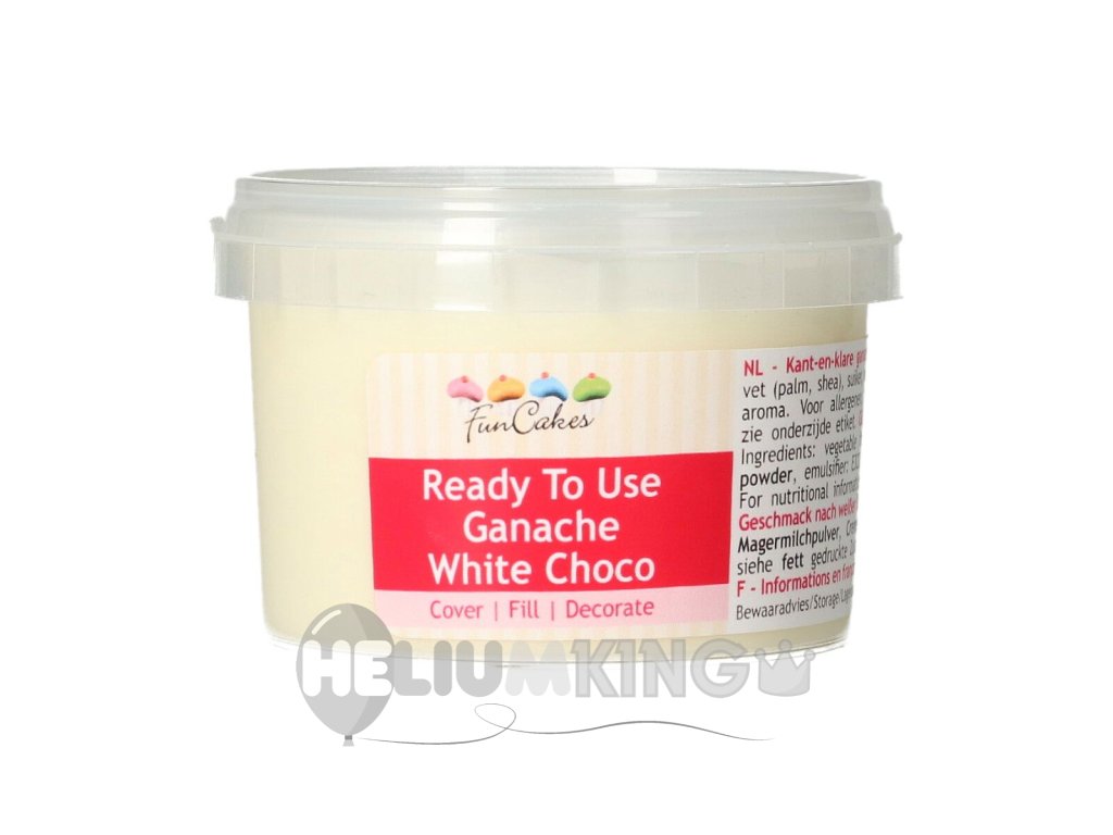 Vse, kar morate storiti, je, da pripravljeno belo glazuro ganache segrevate v mikrovalovni pečici 1 minuto ali pa jo klasično segrejte v vodni kopeli. V hladilniku se ganache strdi. 1 zavoj zadostuje za prekrivanje torte premera 25 cm ali za dvojni nadev torte premera 20 cm ali za dekoracijo 20 - 25 kolačkov.