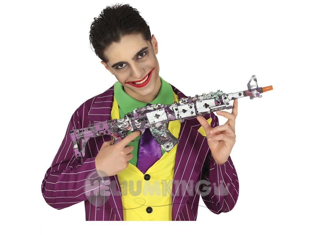 Brzostrelka s potiskom „Joker“ je odličen dodatek za tiste, ki želijo svojemu kostumu dodati malo stripovskega pridiha. Njegov barvit potisk, ki ga je navdihnil legendarni zlobnež, daje orožju značilen in privlačen videz. Ta dodatek je idealen za zabave za noč čarovnic, pusta, ali tematske dogodke, kjer želite očarati s stilom.