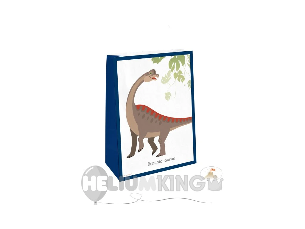 Velika darilna vrečka z nalepkami Srečnega dinozavra. Primerna je, če želite na zabavi podariti majhno darilo svojim gostom. Primerna je tudi za majhno darilo za rojstnodnevnega dečka ali deklico, ki ima rada dinozavre. Torbica se ujema s tematiko zabave Dobri dinozaver ki jo lahko najdete tukaj.