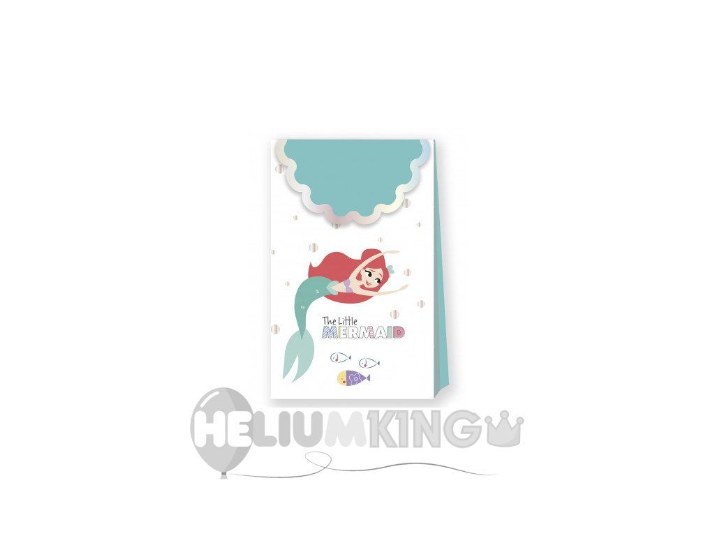 Darilne vrečke z motivom Ariel, male morske deklice. Primerna je, če želite gostom na zabavi npodariti majhno darilo. Služi tudi kot majhno darilo za slavljenko ali slavljenca, ki ima rad ta pravljični lik. Darilna vrečka se ujema s temo zabave Mala morska deklica.