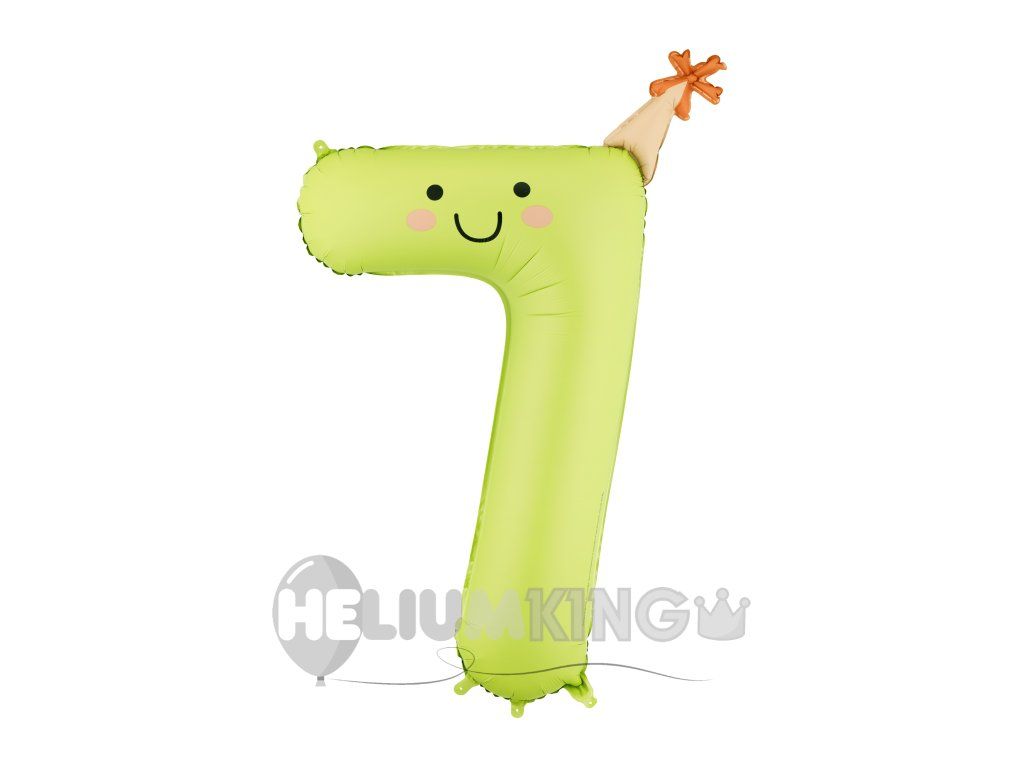 Foliasti balon rojstnodnevna številka 7 – Zelen s klobukom 86 cm