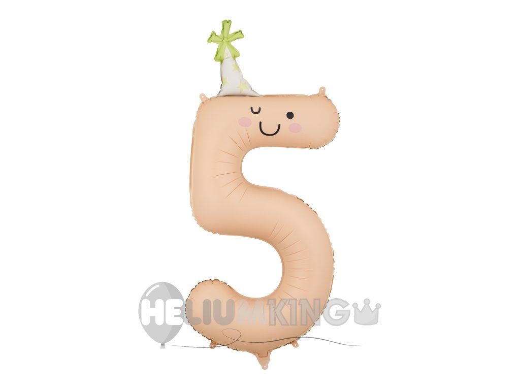 Mat folijski balon številka »5« v nežni breskovi barvi z barvitim klobučkom je stilska dekoracija, ki vsaki zabavi doda prijetno in veselo vzdušje. Idealen je za rojstni dan, obletnico ali tematsko zabavo, pri čemer njegova moderna mat izvedba deluje elegantno in se zlahka kombinira z drugimi barvami in dekoracijami.