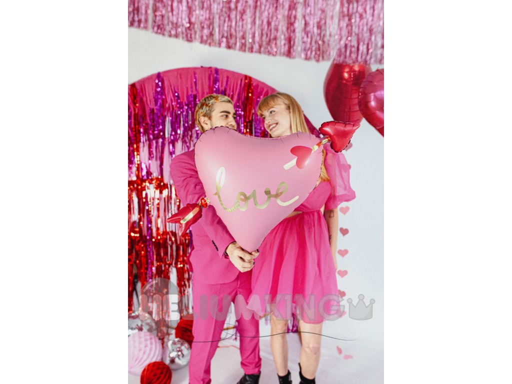Zaljubljeni do ušes? Pokažite to na stilski način! Folijski balon v obliki srca s puščico in napisom "Love" je tu, da popestri vsak romantičen trenutek.