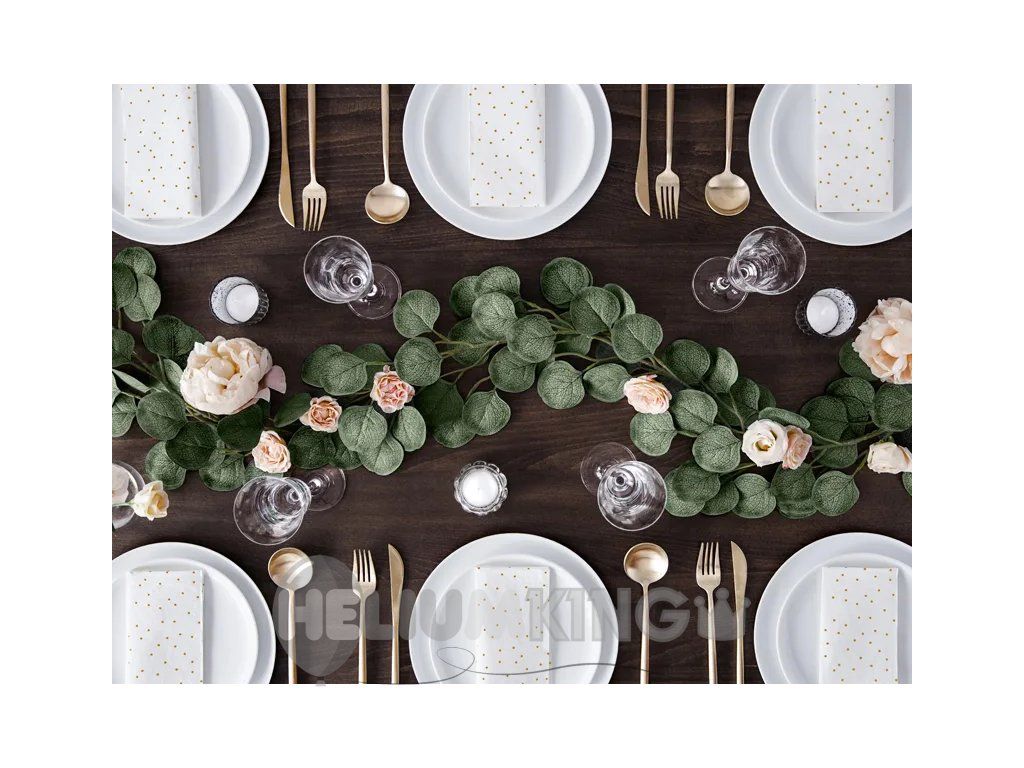 Izvirna dekoracija s katero lahko dopolnite svojo poročno dekoracijo v stilu vintage ali greenery . Za razliko od živega evkaliptusa lahko girlando uporabljate večkrat.