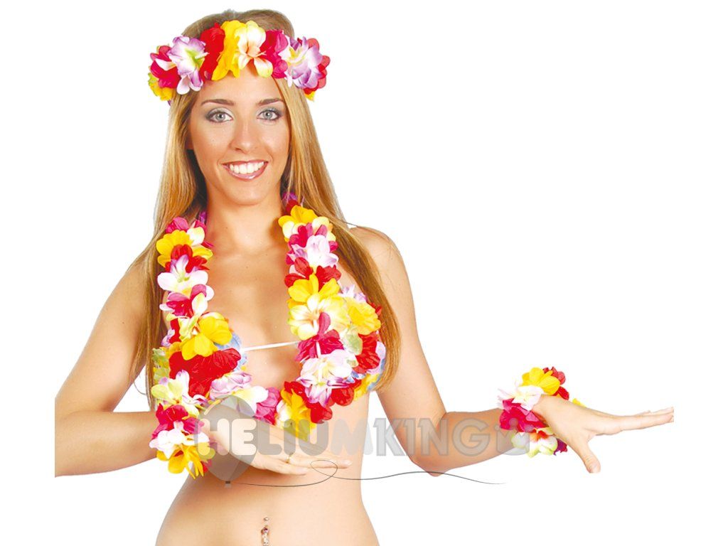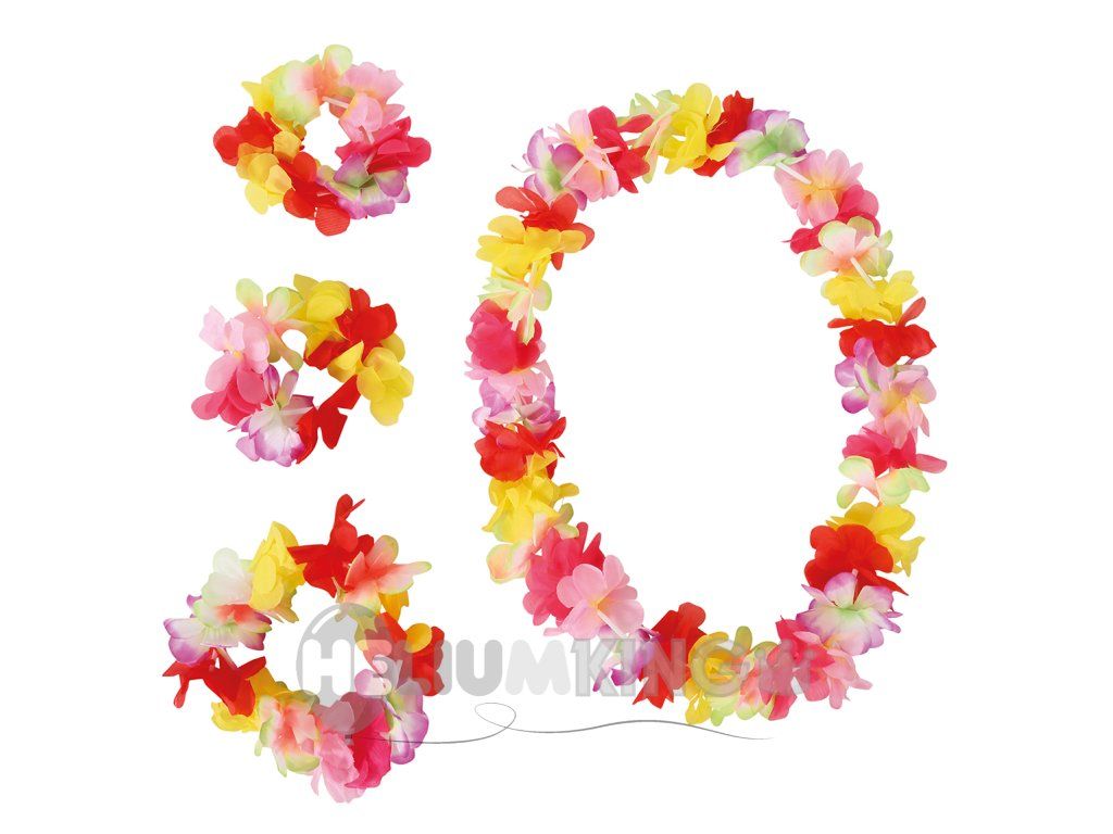 Večbarvni havajski komplet je pomemben dodatek k poletni zabavi ob bazenu ali tematski Havaji tropski zabavi.