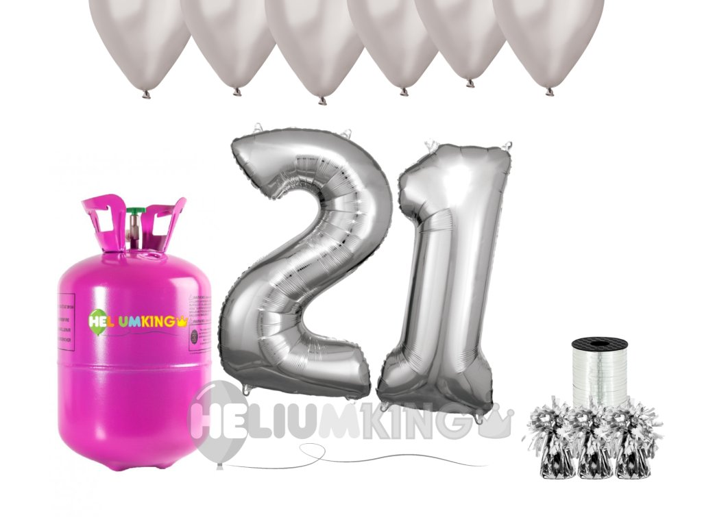Helijev set za zabavo za 21. rojstni dan s srebrnimi baloni