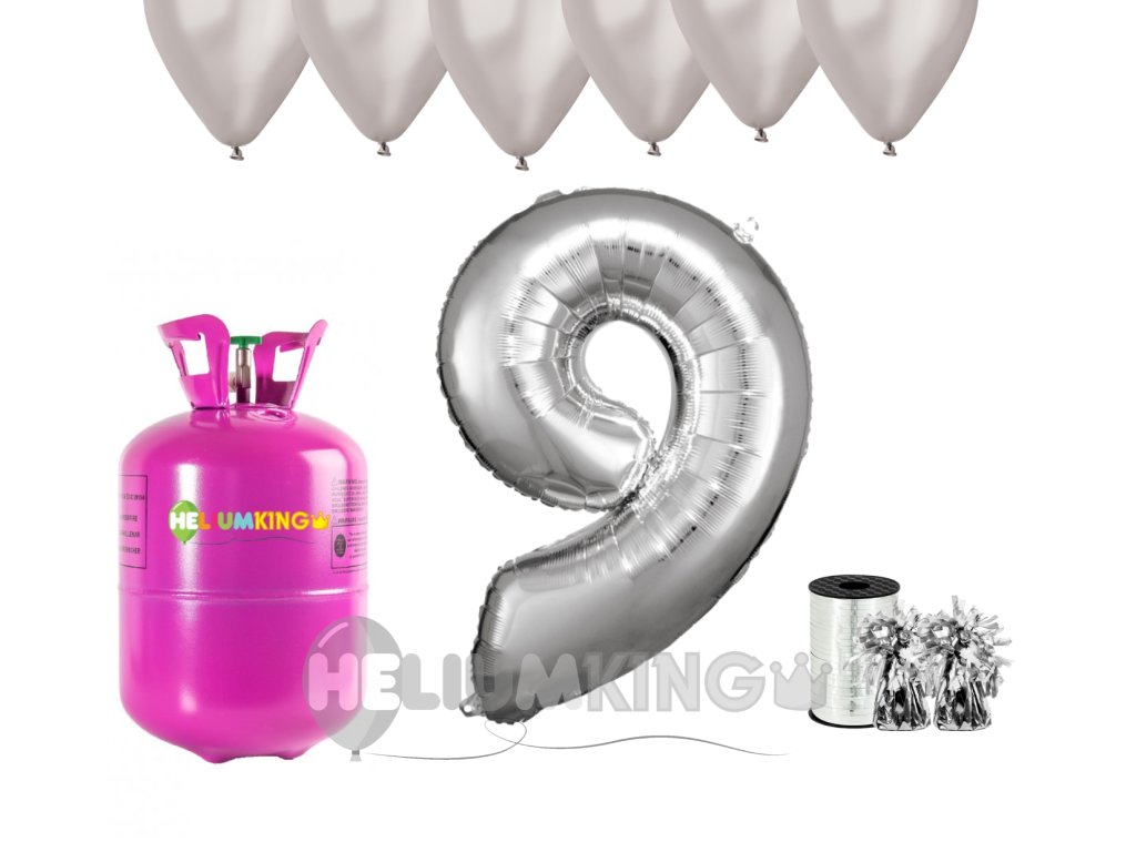 Helijev set za zabavo za 9. rojstni dan s srebrnimi baloni