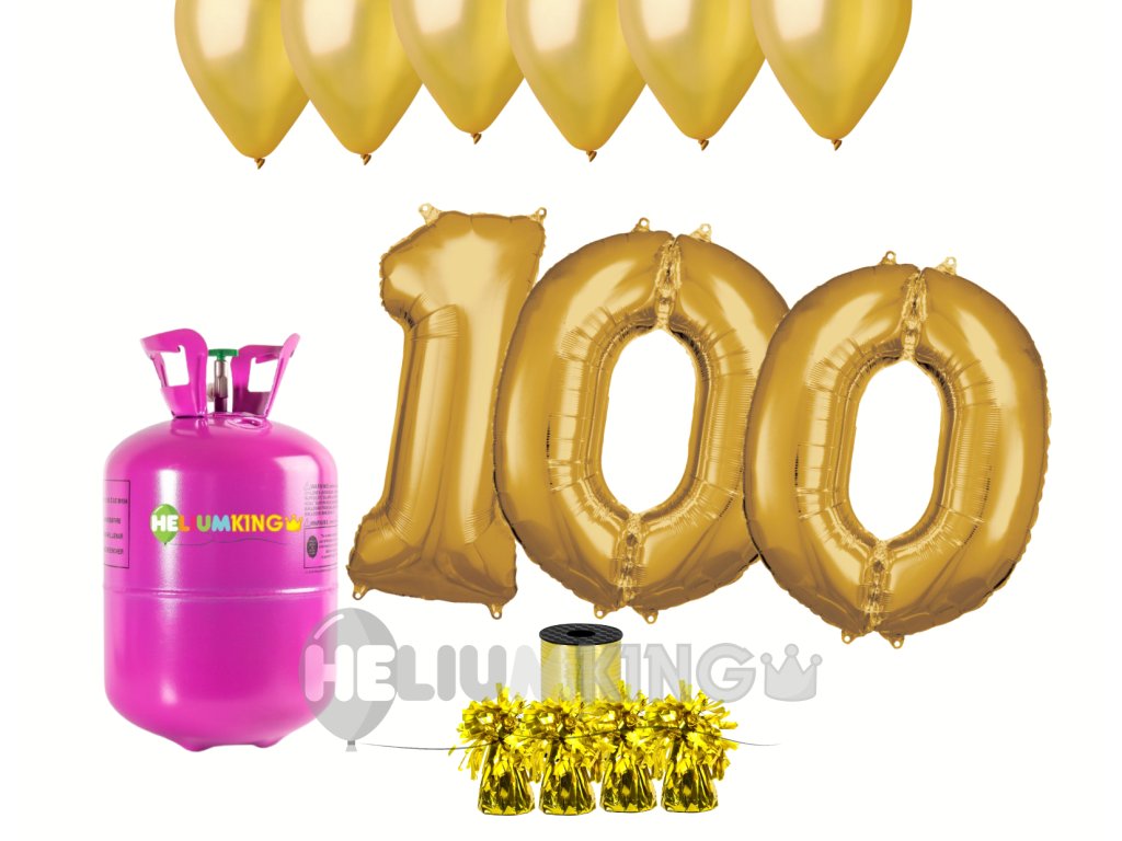 Hélium párty set na 100. narodeniny so zlatými balónmi