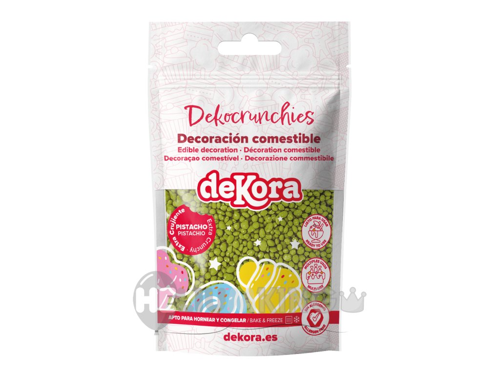 Pripravite se na pravo pistacijevo zabavo! Naša hrskava dekoracija CRUNCHIES s pistacijevim okusom bo razveselila vsako torto, kolač ali sladoled. Samo posujte in zabava se lahko začne – zeleni koščki hrustajo pod zobmi in razvajajo brbončice. Ne glede na to, ali ste domači slaščičar ali le sladkosned, bo s CRUNCHIES vsak vaš desert zvezda večera. Ne odlašajte, odprite paketek in se prepustite pistacijevemu hrustanju!