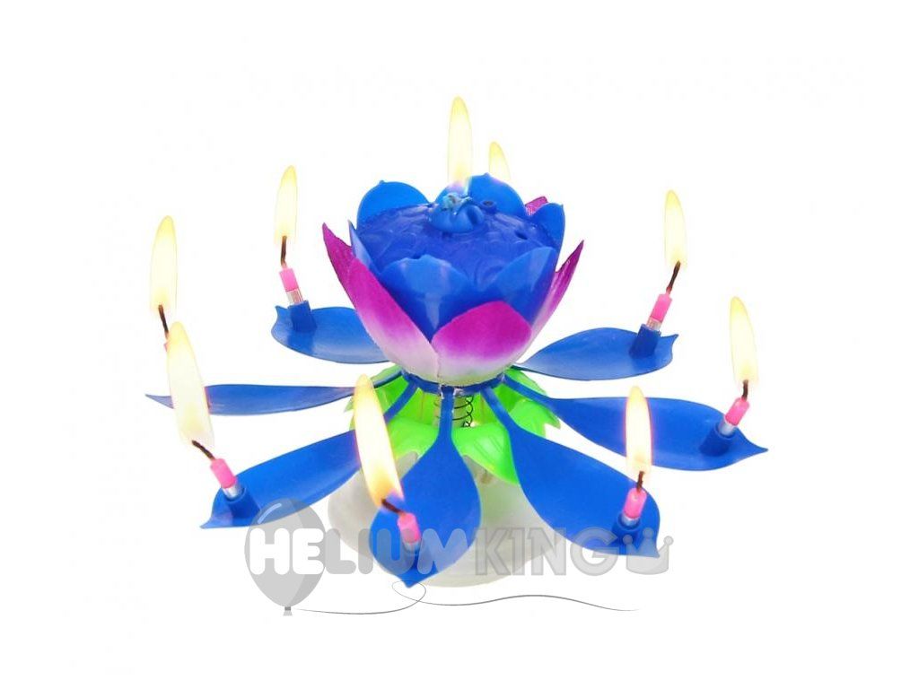 Rojstnodnevna sveča v obliki lotosovega cveta, ki se vrti okoli svoje osi in igra melodijo, je kot nalašč za tematske zabave.