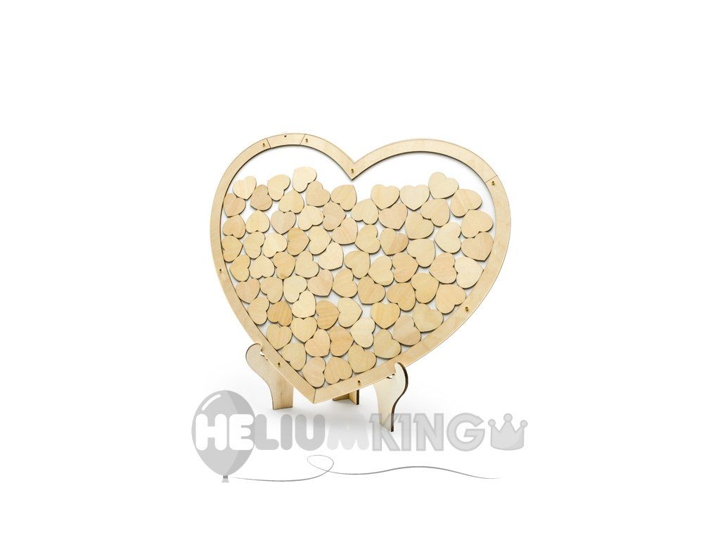 Ta odlična Knjiga gostov v leseni izvedbi v obliki srca, vam polepša poročni dan. Knjiga vsebuje 70 kos srčkov, na na katere se lahko vaši gostje podpišejo.