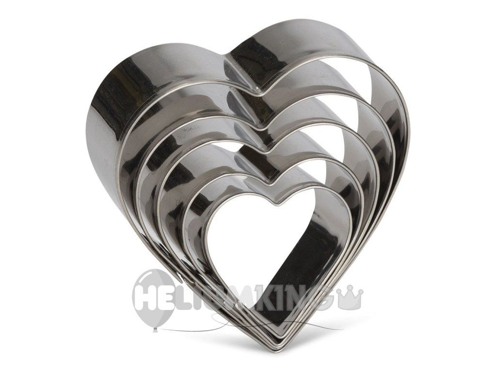 Komplet modelčkov za piškote v obliki srca vključuje 5 različnih velikosti. Izrezani izdelki bodo odlično krasili romantične, poročne ali rojstnodnevne torte. Modelčke lahko uporabite za pripravo domačega peciva, medenjakov in piškotov. Primerni so tudi za izrezovanje iz fondanta ali marcipana .