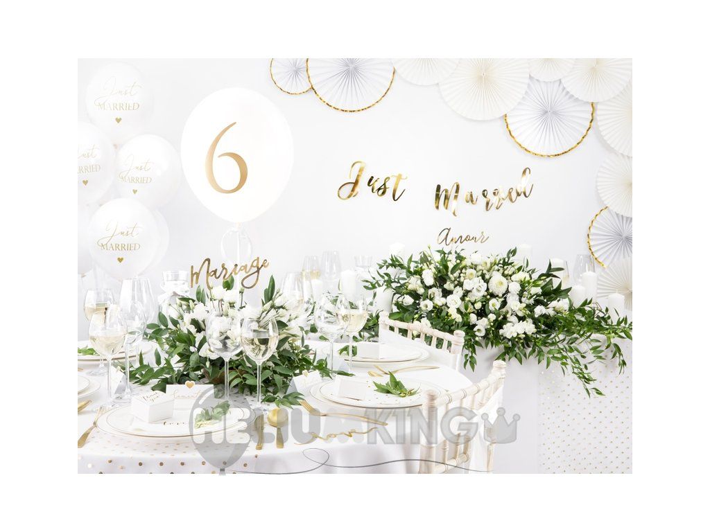Balon iz lateksa natisnjenim Just Married. Primeren za dekoracijo otroške zabave ali rojstnodnevne zabave. Baloni so visokokakovostni in jih lahko napihnete z zrakom ali helijem.