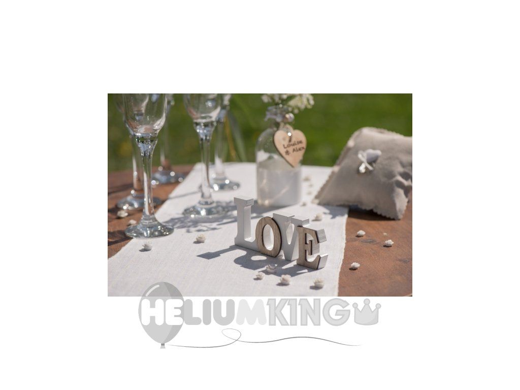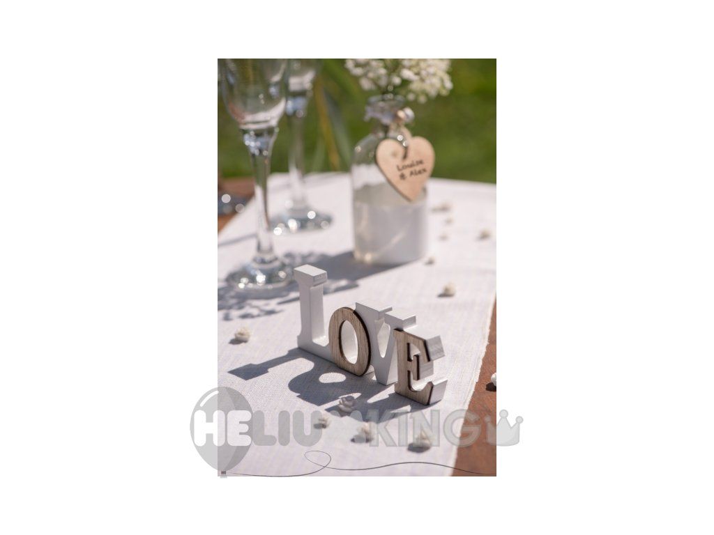 Lesen znak LJUBEZEN v beli in rjavi barvi je zelo lep namizni okras za poroko ali valentinovo.