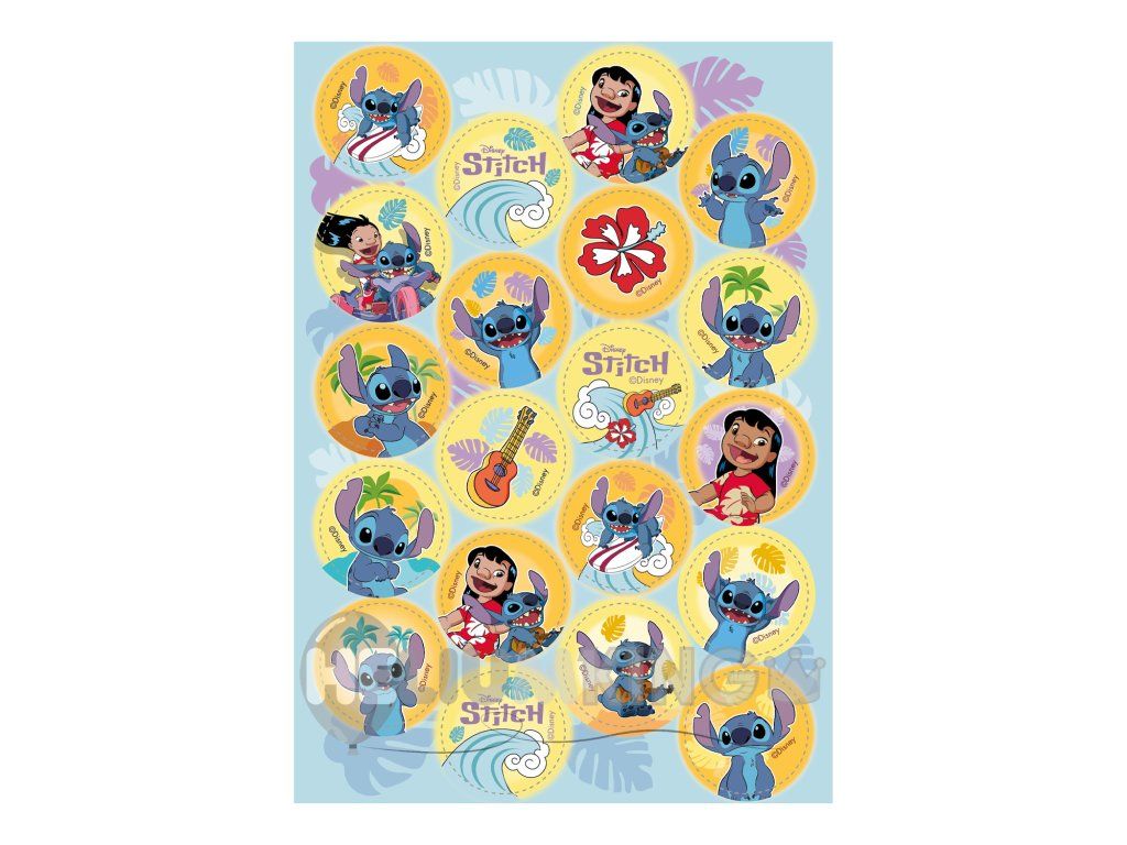 Privoščite svojim pecivom igriv in pravljičen videz z užitnimi okraski s Stitchem! Te majhne slike s premerom 3,4 cm so idealne za cupcakes, mafine ali piškote. Enostavno jih namestite in takoj dodajo vašim sladicam čarobno dekoracijo.