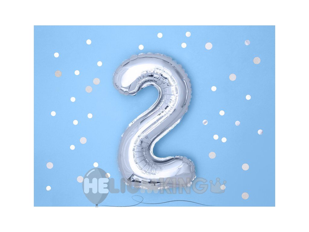 Mini balon iz folije - številka 2 srebro 35 cm