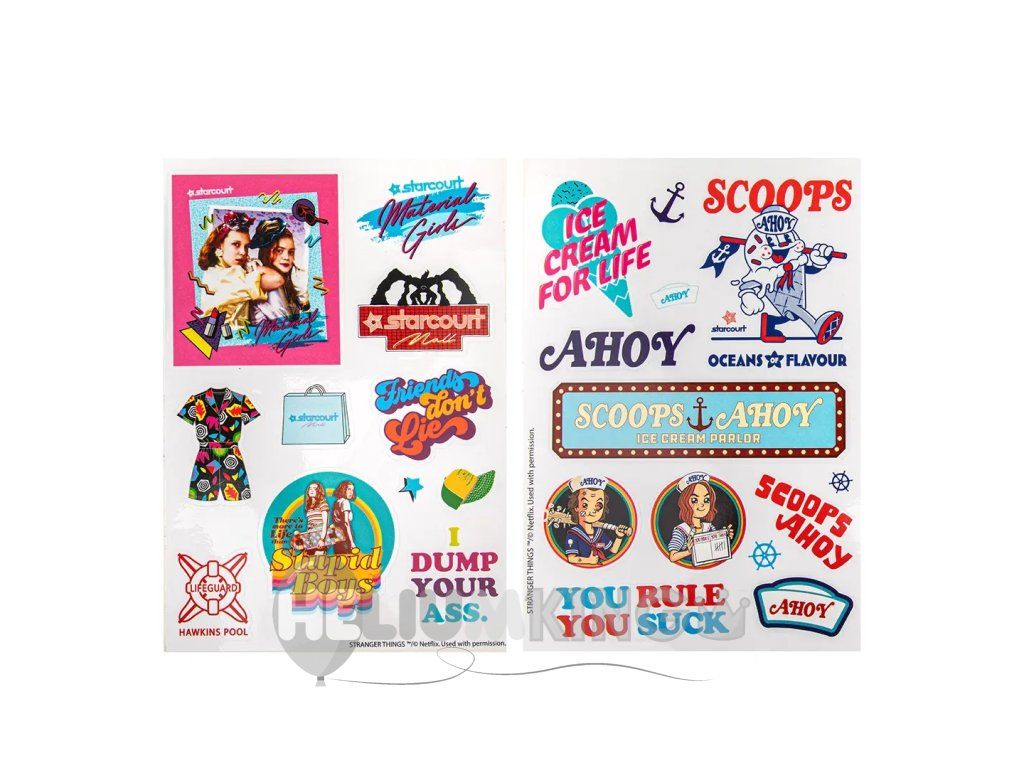 Pripravi se na pravo dozo pustolovščin iz Hawkinsa! S temi nalepkami iz 3. sezone Stranger Things lahko okrasiš zvezek, telefon, prenosnik ali karkoli, kar potrebuje še malo več sloga iz 80-ih in skrivnostnega vzdušja. Dustin, Eleven, Demogorgon ali sladoledarna Scoops Ahoy – vsi čakajo, da jih nalepiš na svoje najljubše stvari. Vstopi v svet, kjer je vse mogoče, in vsem pokaži, da si pravi oboževalec Stranger Things!