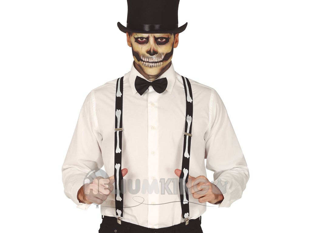 Vaš pustni kostum ali kostum za noč čarovnic bo z različnimi dodatki, kot so ti naramnice s potiskom kosti , videti bolj verodostojen. Ta dodatek je primeren za karnevalske kostume, seveda pa ga prepuščamo vaši domišljiji.