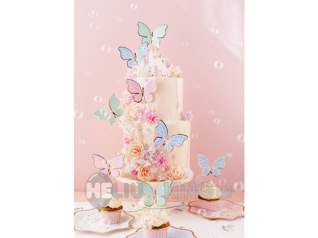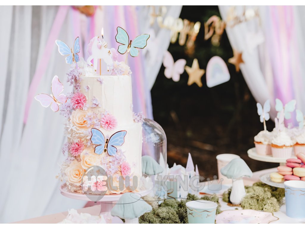 Dekorativne paličice z motivom metuljev so idealen dodatek za torto, mafine ali druge sladke dobrote. Nežen in eleganten dizajn čudovito popestri dekoracijo rojstnodnevne zabave, krsta, poroke ali spomladanske zabave. Enostavno jih zapičite v torto in takoj ustvarite stilski ter praznični videz sladic.