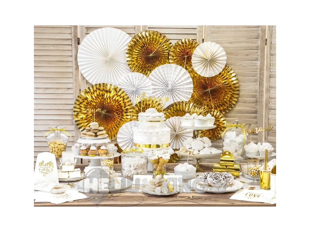 Izpopolnite svoj zabavo do popolnosti! Okrasne rozete v zlatih odtenkih bodo navdušile vse vaše goste.
