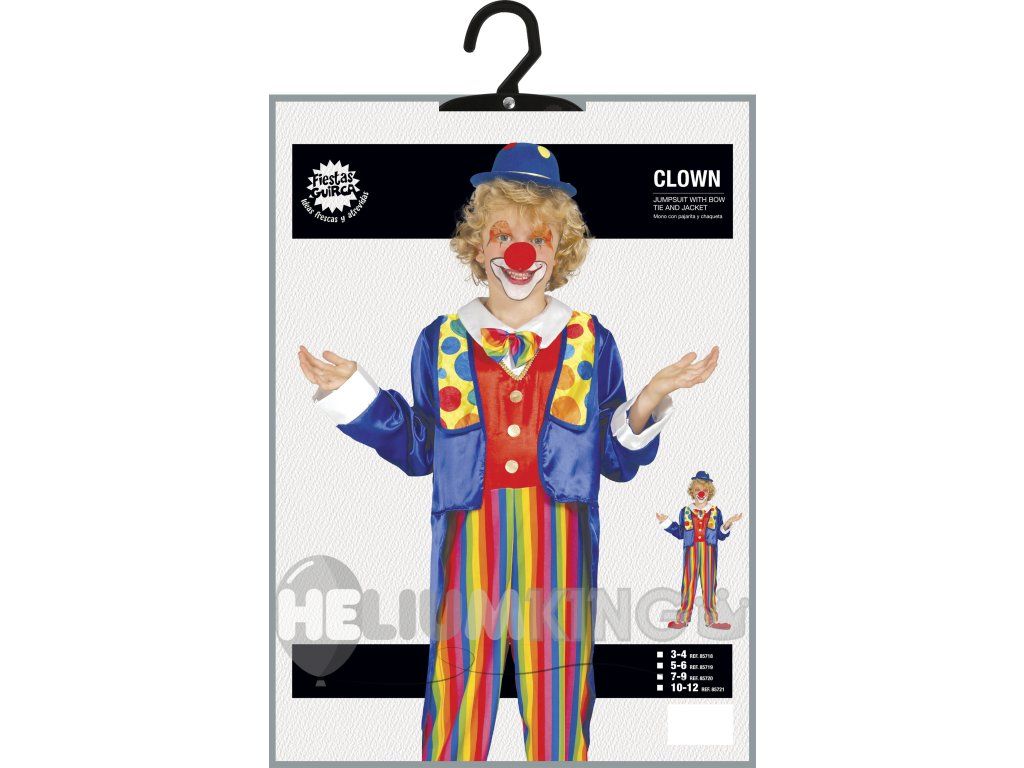 Ali pripravljate svojega otroka na s karneval ali zabavo? Vzemite mu ta izvirni kostum klovna, s katerim bo zvezda večera. Primeren je za zabavo za noč čarovnic, karneval, ali druge priložnosti. Uporabo prepuščamo vaši domišljiji.
