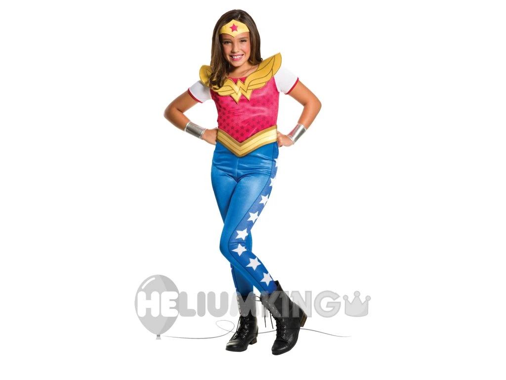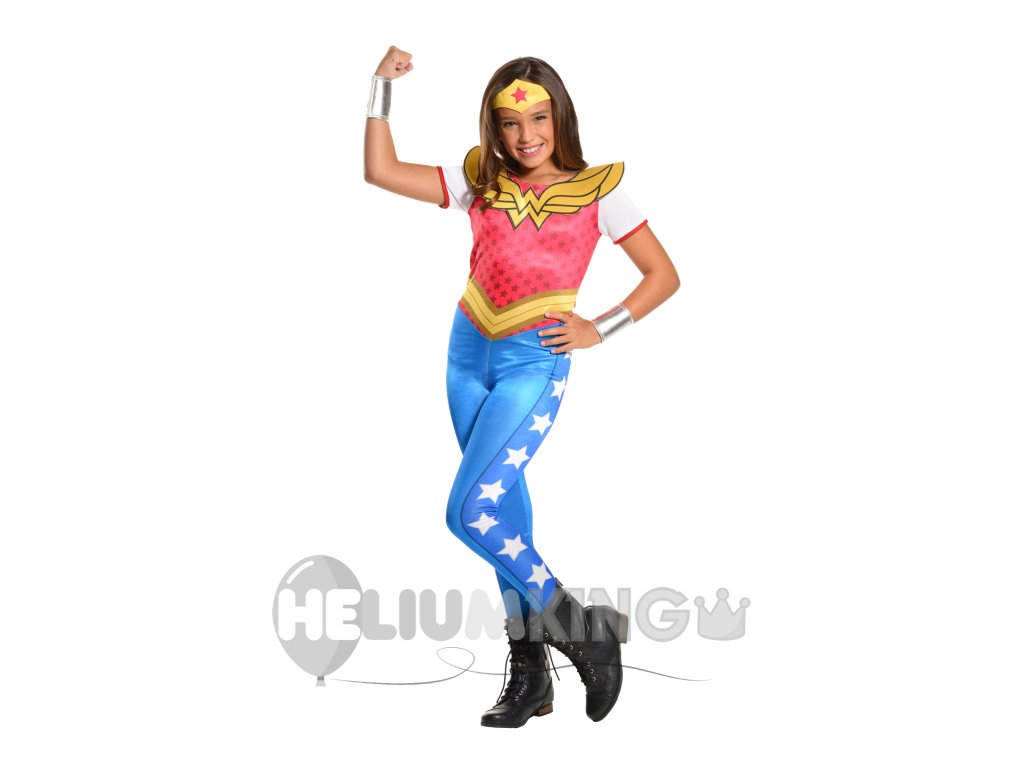 Ta kostum oživi zgodbo stripovske legende in pomaga vaši mali junakinji, da napiše tudi svojo zgodbo. Kostum je izdelan iz udobnih materialov. Wonder Woman. Emblem na prsih kostumu doda pristnost.