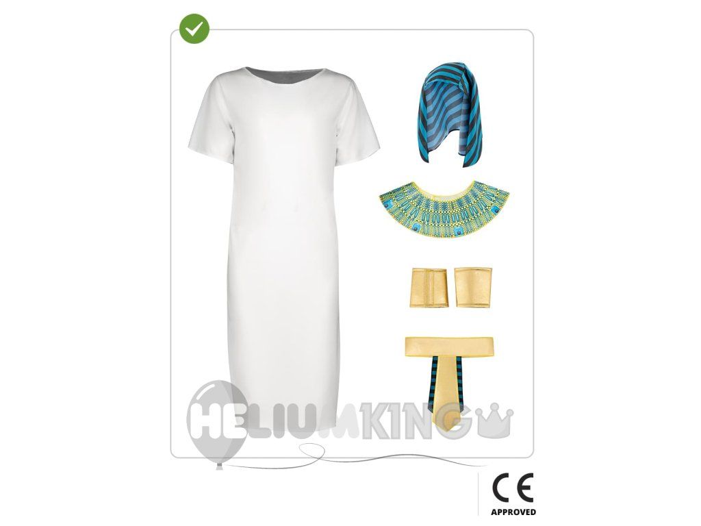 V kompletu so trak za glavo, tunika s tipičnim egipčanskim vzorcem in pas, ki vse skupaj drži na mestu tudi ob najbolj divjem plesu okoli Nila. Kostum je zasnovan tako, da ga zlahka oblečeš in slečeš – brez zapletenih vozlov ali skrivnostnih hieroglifov! Idealen je za pustovanja, praznovanja ali preprosto za vsakodnevno kraljevanje v otroški sobi. S tem kostumom boš zvezda vsake zabave, morda pa odkriješ tudi svoj zaklad!