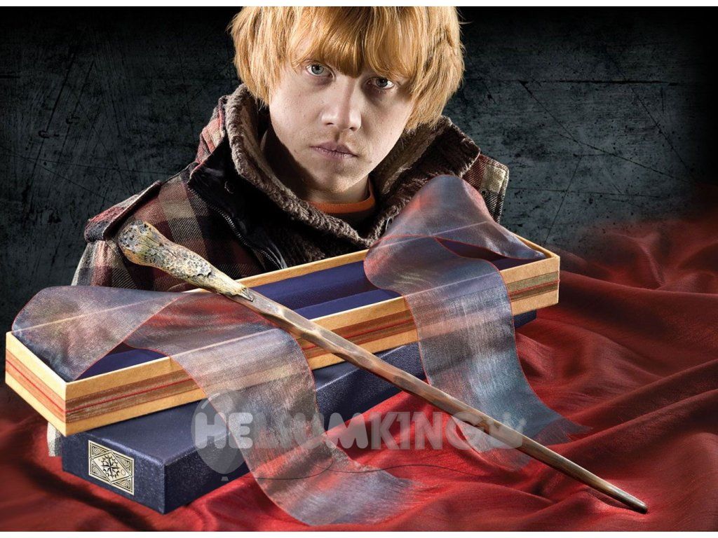 S to čarobno palico Rona Weasleyja, ki ji je priložena škatla, obložena z žametnim materialom, in okrasnim trakom, lahko razveselite sebe ali svoje bližnje.
