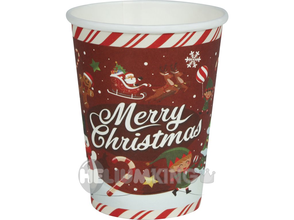 Popestrite svojo božično zabavo s temi veselimi papirnatimi kozarci Merry Christmas! Vsak paket vsebuje 6 kozarcev s prostornino 240 ml – idealna velikost za vročo kakav, božični punč ali mehurčkasto malinovo pijačo.