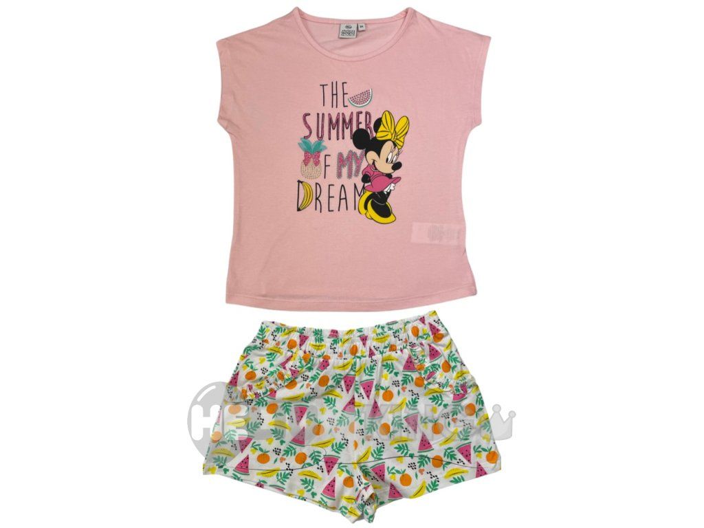 Barvit modni kos omogoča damam, da izberejo udobna oblačila z originalnim potiskom Minnie Mouse . Majica s kratkimi rokavi in kratke hlačeso preprost trendi kos, ne glede na to, ali z njimi kombinirate bolj elegantne ali športne dodatke, vsekakor ne smejo manjkati v omari .