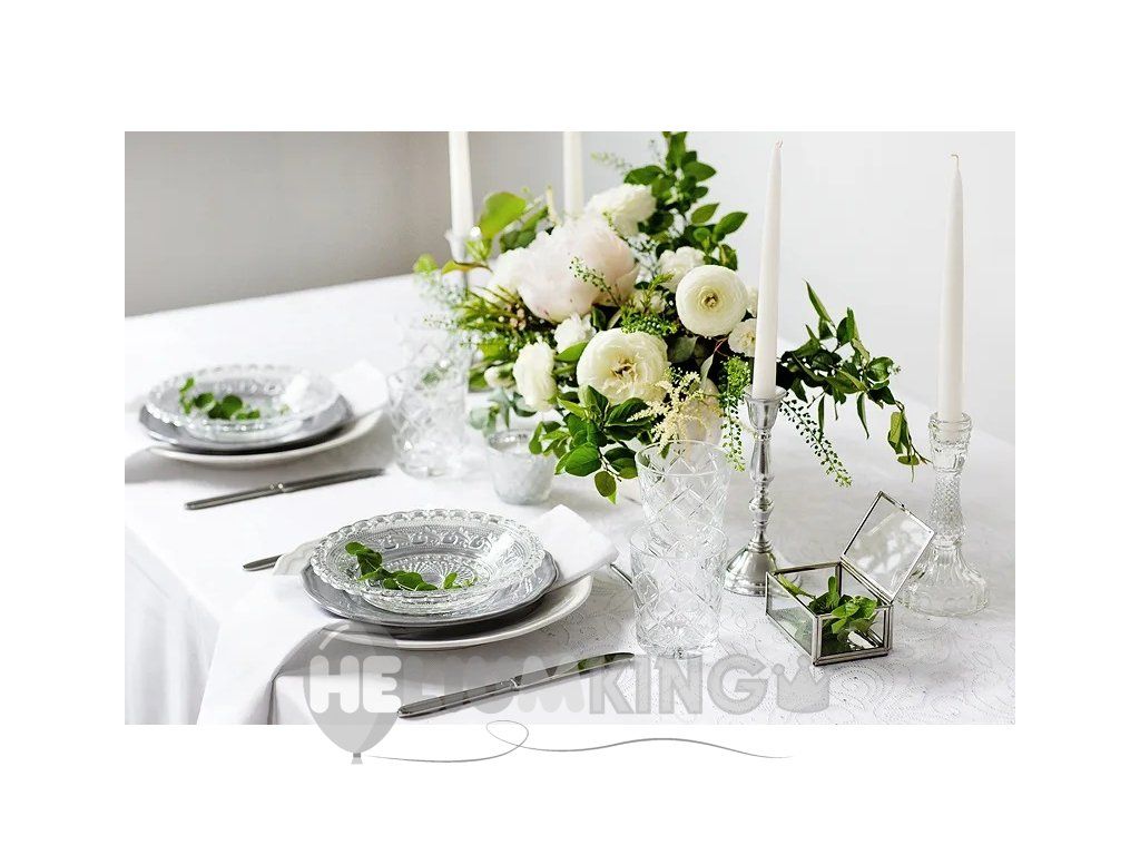Vsako praznovanje mora imeti dekoracijo do najmanjše podrobnosti, tudi če je to jedilna zabava. Pri organizaciji zabave ne pozabite na prtičke, saj so praktični in hkrati odličen okras za praznovanje. Jedilni pribor za zabavo lahko dopolnite s kozarci, krožniki in namiznim prtom. Ti beli prtički iz blaga za večkratno uporabo so primerni za poročni sprejem, pa tudi za druge priložnosti.