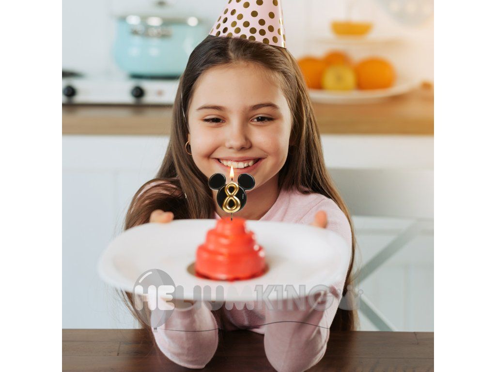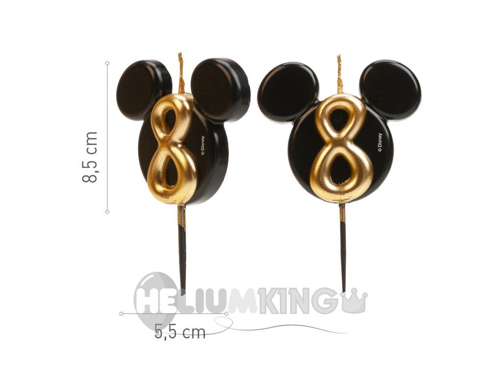 Stilna in izvirna sveča s številko 8 v dizajnu ikonične glavice Mickey Mousea! Elegantna kombinacija črne in zlate barve bo tortam dodala razkošen videz in razveselila male ter velike oboževalce Disneyja.