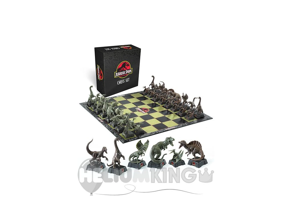 Šah iz serije Jurski park vas bo popeljal v svet prazgodovinskih živali in vas hkrati treniral v taktičnem mišljenju. Šahovski komplet vsebuje 32 kosov natančno upodobljenih figur najbolj znanih dinozavrov in kartonsko ploščo. Kralj je seveda Tiranozaver Rex, Kraljica Spinozaver, lovci so Dilofozavri, skakači so Velociraptorji, trdnjave Brachiosaurus Towers in kmetje Pteranodoni.