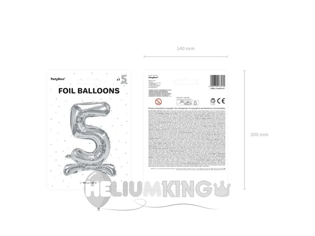 Samostoječi balon iz folije - 5 srebrna 70 cm