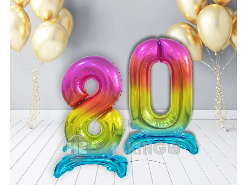 Popestrite svojo rojstnodnevno dekoracijo s samostoječimi baloni iz folije v obliki številke. Čeprav so dražji od klasičnih balonov iz lateksa, je njihova prednost kakovost in neprepustnost. Prostostoječi balon iz folije ima to prednost, da stoji tam, kamor ga postavite. Baloni iz folije, napolnjeni z zrakom, bodo brez večjih sprememb zdržali več mesecev.