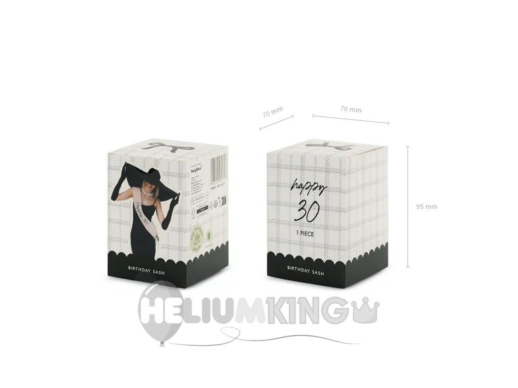 Se tridesetka bliža? Proslavite jo v velikem slogu s to šerpo, ki kriči: »Happy 30!« Postanite zvezda večera – naj vsi vedo, kdo je danes glavni slavljenec! Pisani baloni, smeh, torta in morda tudi kakšen plesni korak – s to šerpo je zagotovljeno, da se bo o vaši zabavi še dolgo govorilo. Trideset je samo številka, toda s to šerpo je to številka, ki si zasluži resnično praznovanje! Pokažite svetu, da se danes piše zgodovina – navsezadnje je tridesetka le enkrat v življenju!