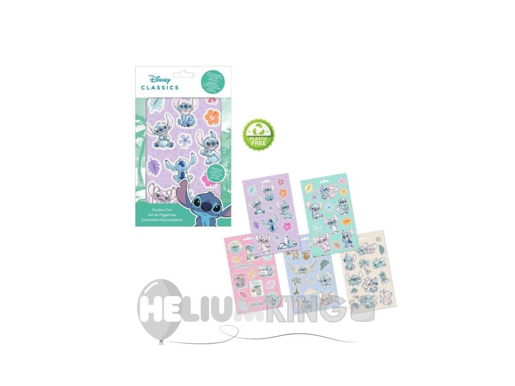 Komplet vsebuje različne nalepke, na katerih je upodobljen Stitch v različnih položajih in izrazih, tako da lahko otroci ustvarijo svoje zgodbe in scenarije.