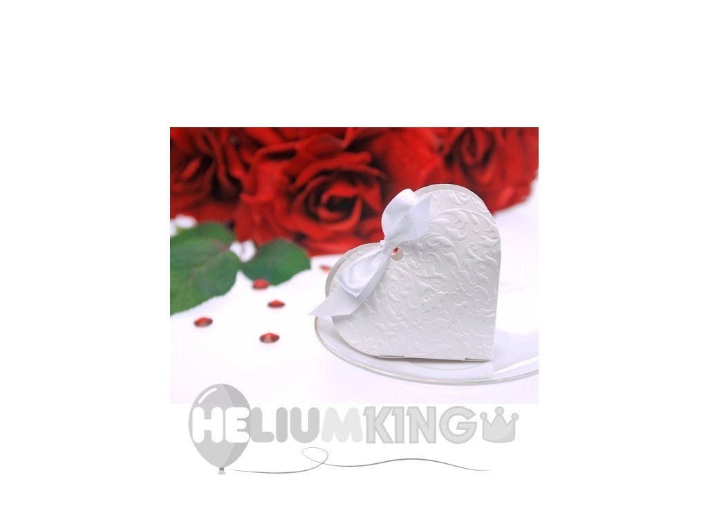 Škatlica Belo srce s pentljo 10 kosov