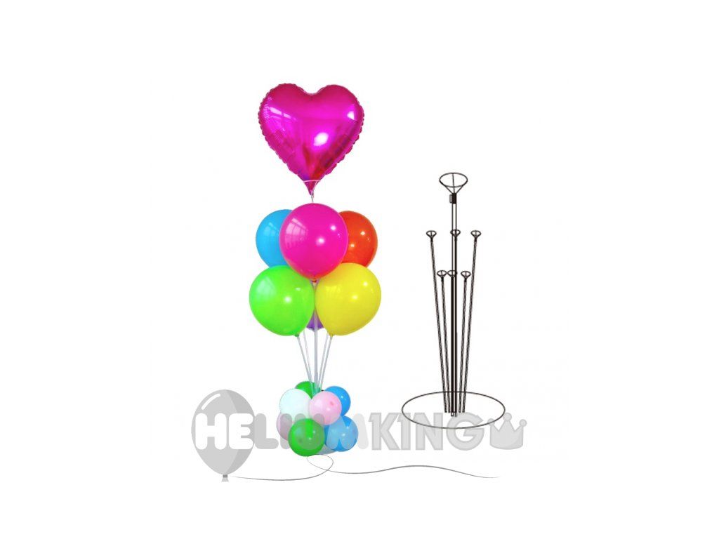 Pametno stojalo za balone, ki pomaga ustvariti izvirno dekoracijo za vsako praznovanje. Palice v stojalu so različnih višin, zato skupaj z baloni tvorijo čudovito dekoracijo. Spodnji del lahko okrasite tudi z majhnimi okrasnimi balončki.