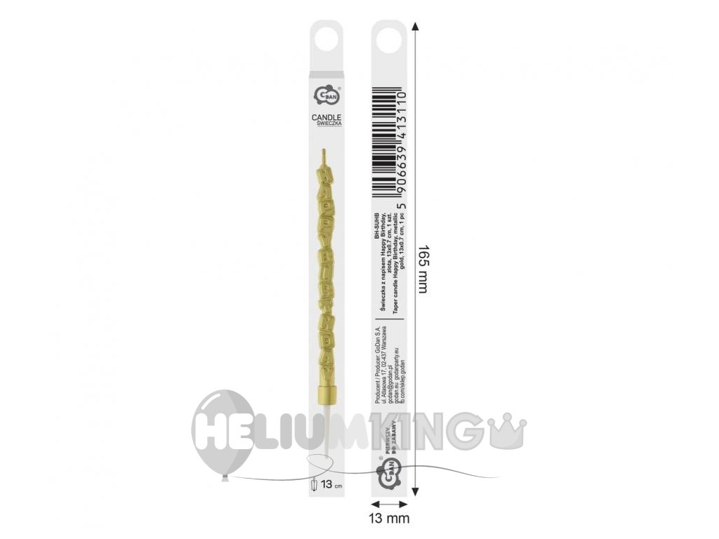 Svečka Happy Birthday - zlata 13 x 0,7 cm 1 kos
