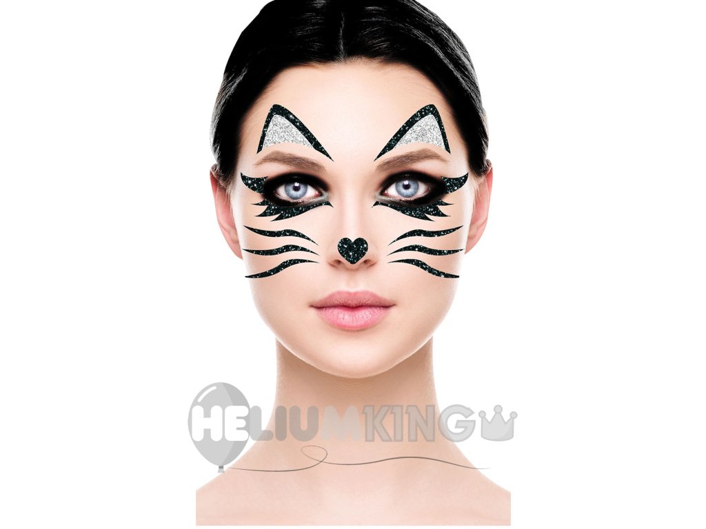Tetovaža na obrazu - Mačka, z bleščicami