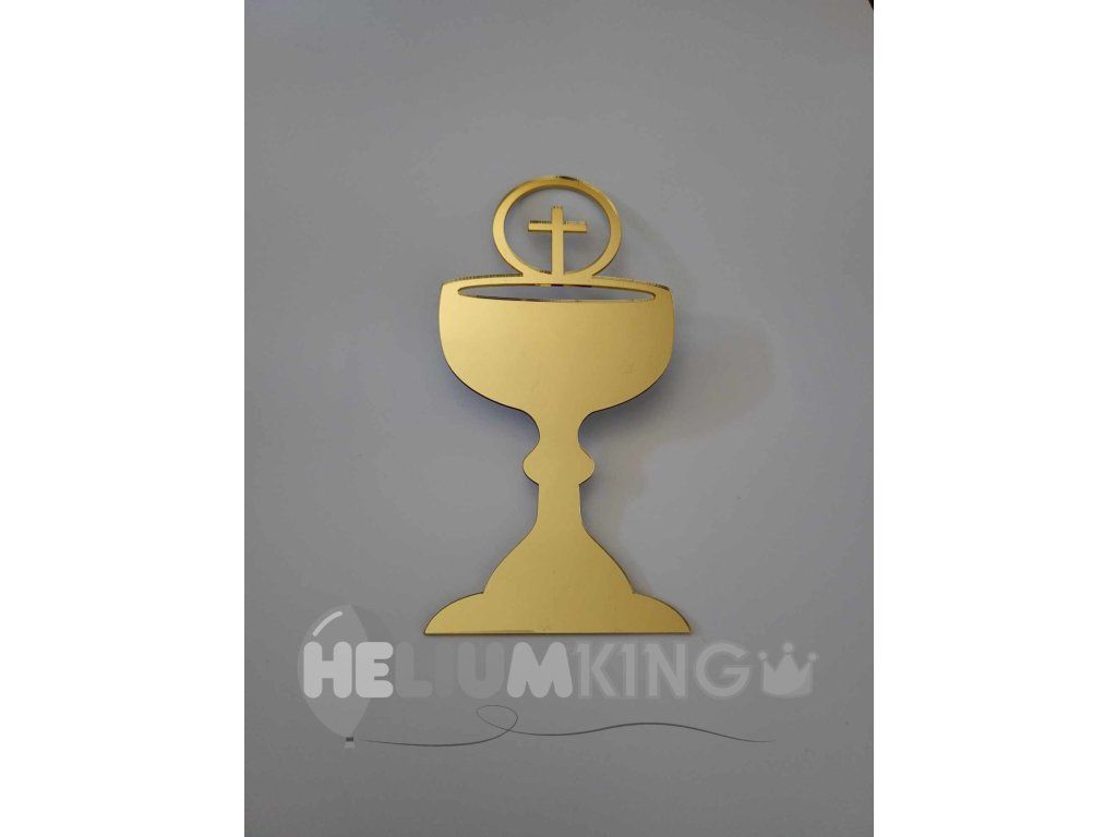 Edinstvena zlata dekoracija v obliki keliha je idealen okrasni dodatek za torto ob prvem svetem obhajilu. Zahvaljujoč tej elegantni dekoraciji lahko tudi navadno torto spremenite v edinstveno torto, ki jo bodo vsi občudovali.