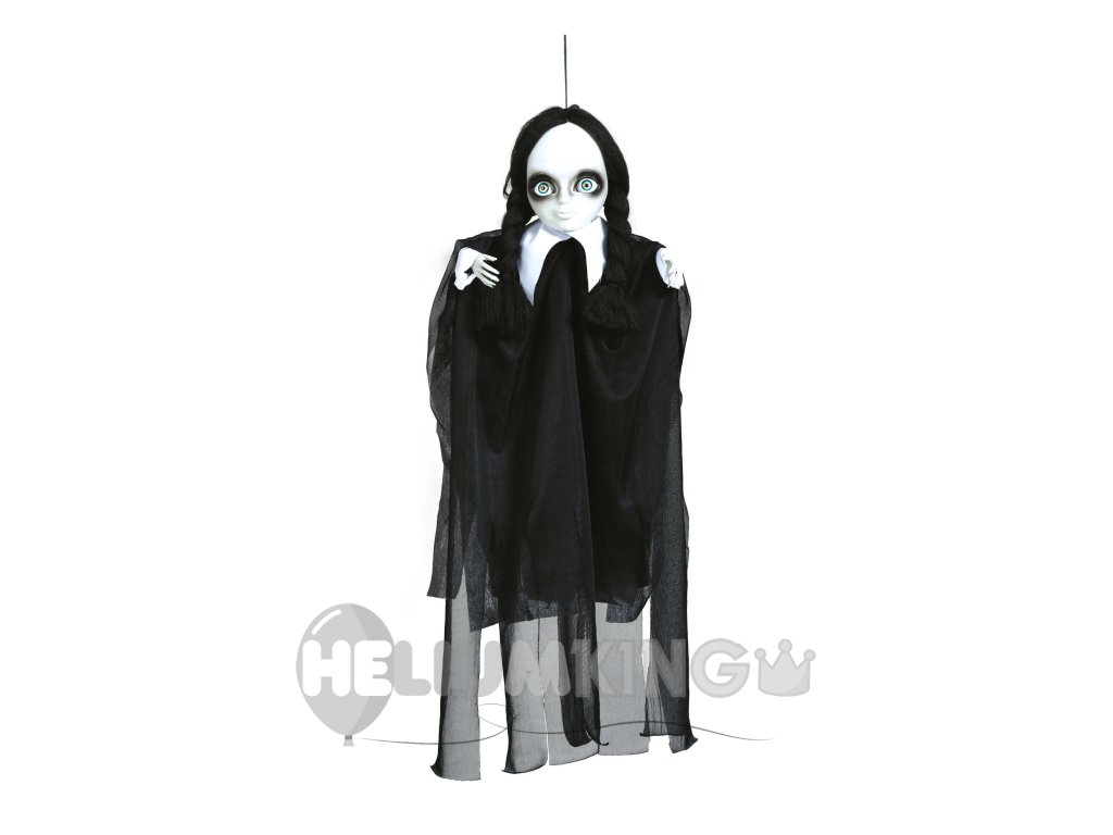 Načrtujete zabavo za noč čarovnic? Ustvarite neprekosljivo vzdušje za noč čarovnic s pomočjo različnih strašljivih okraskov. Ta viseča dekoracija - deklica s kitkami je odličen dodatek za dekoracijo ob noči čarovnic.