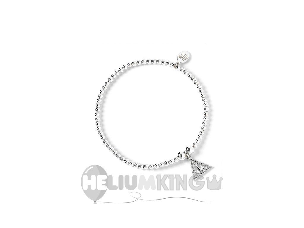 Zapestnica z verižico v obliki kroglic in simbolom Svetinje smrti bo videti odlično na zapestju vsakega pravega ljubitelja Harryja Potterja. Simbol predstavlja vse Svetinje smrti: bezgovo palico, plašč nevidnosti in kamen oživljanja.