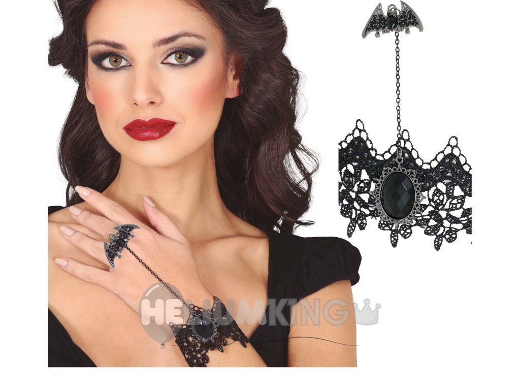 Ta elegantna zapestnica s prstanom v obliki netopirja je popoln dodatek za ljubitelje gotskega stila. S to črno čipkasto zapestnico in prstanom v obliki netopirja se lahko spremenite v elegantno in skrivnostno postavo, ki bo pustila vtis.